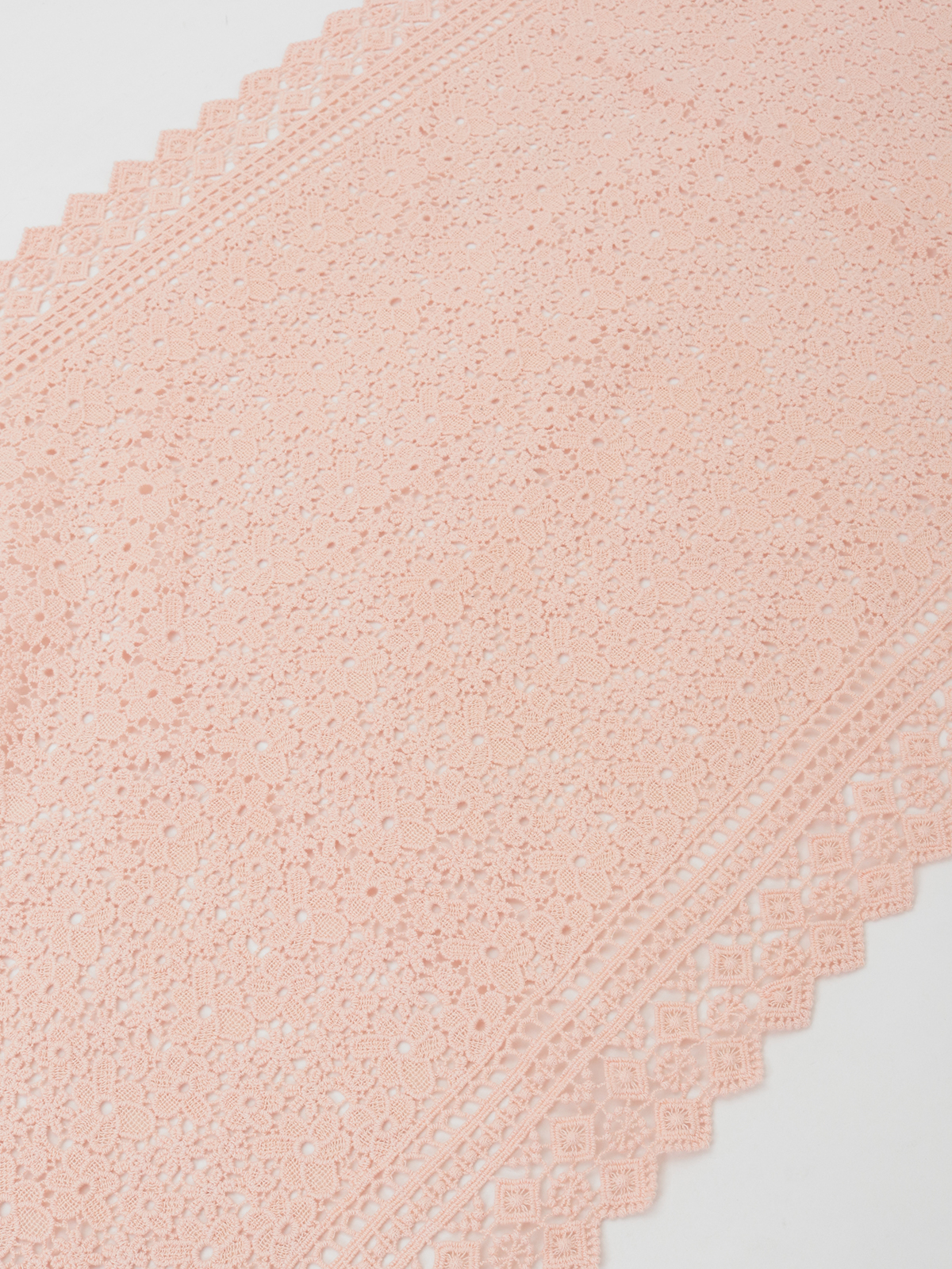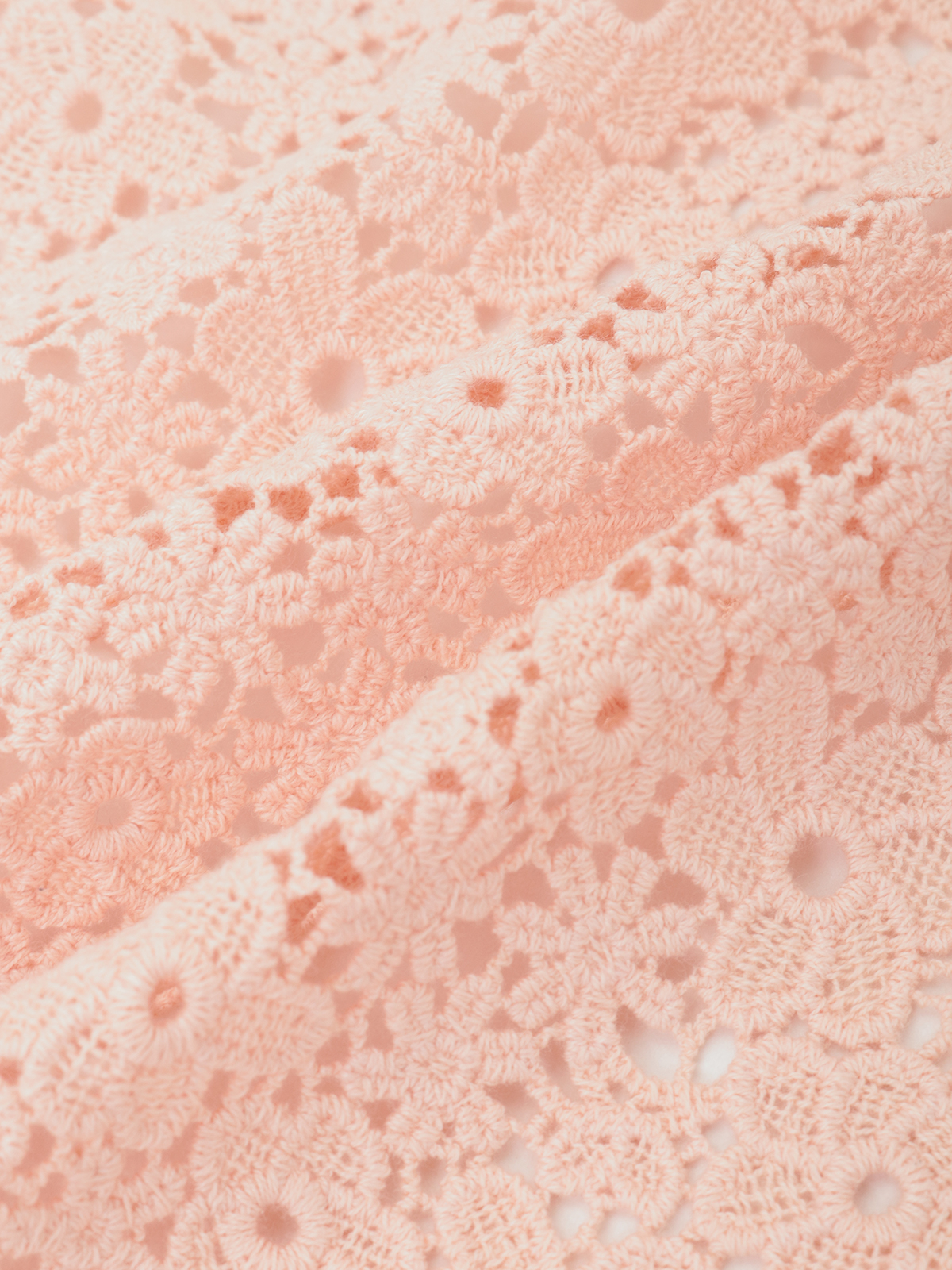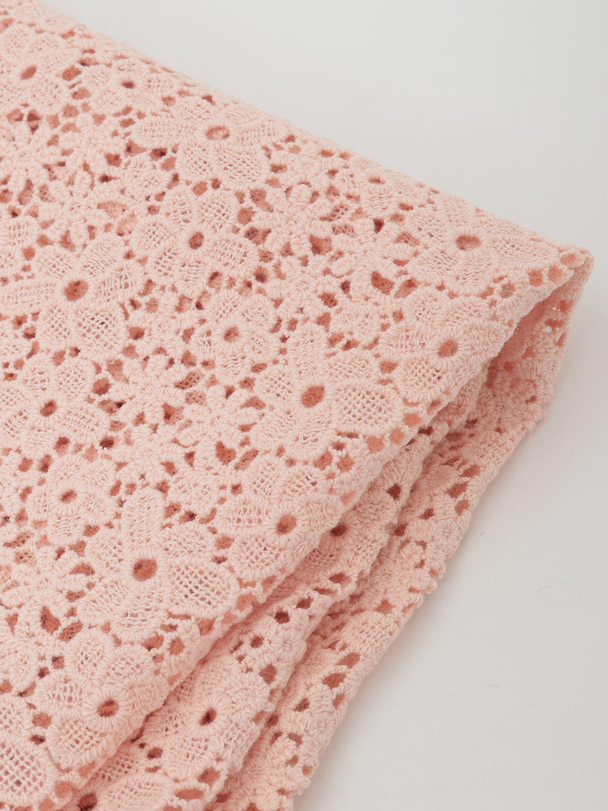 異なる大きさの小花たちを繋ぎ合わせったレース編みは透け感があって春の装いにピッタリ。