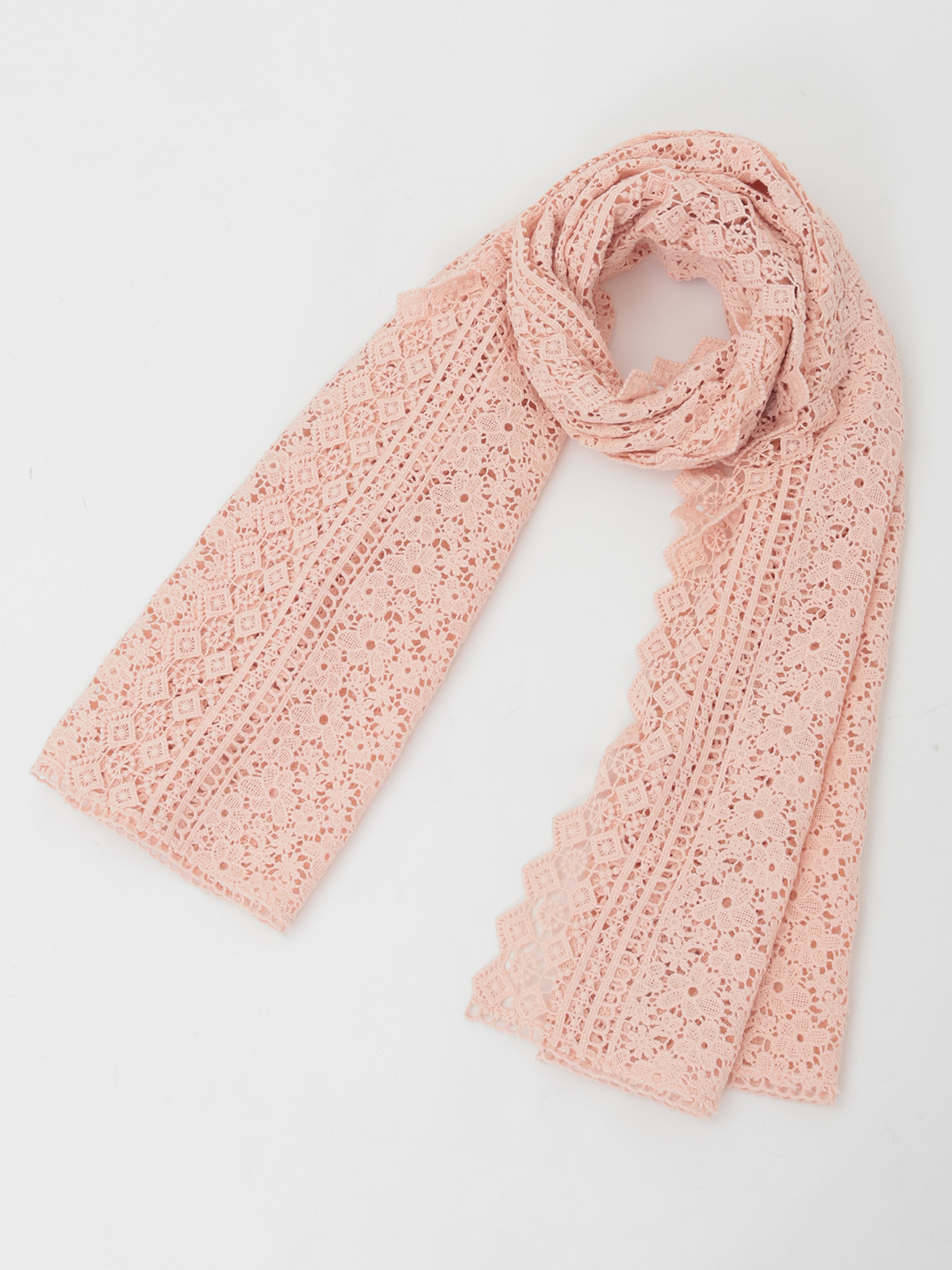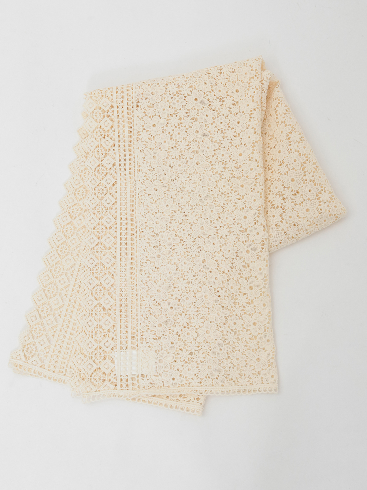 大小さまざまな大きさの小花柄のコットンレースが、可憐で華やかなストール。