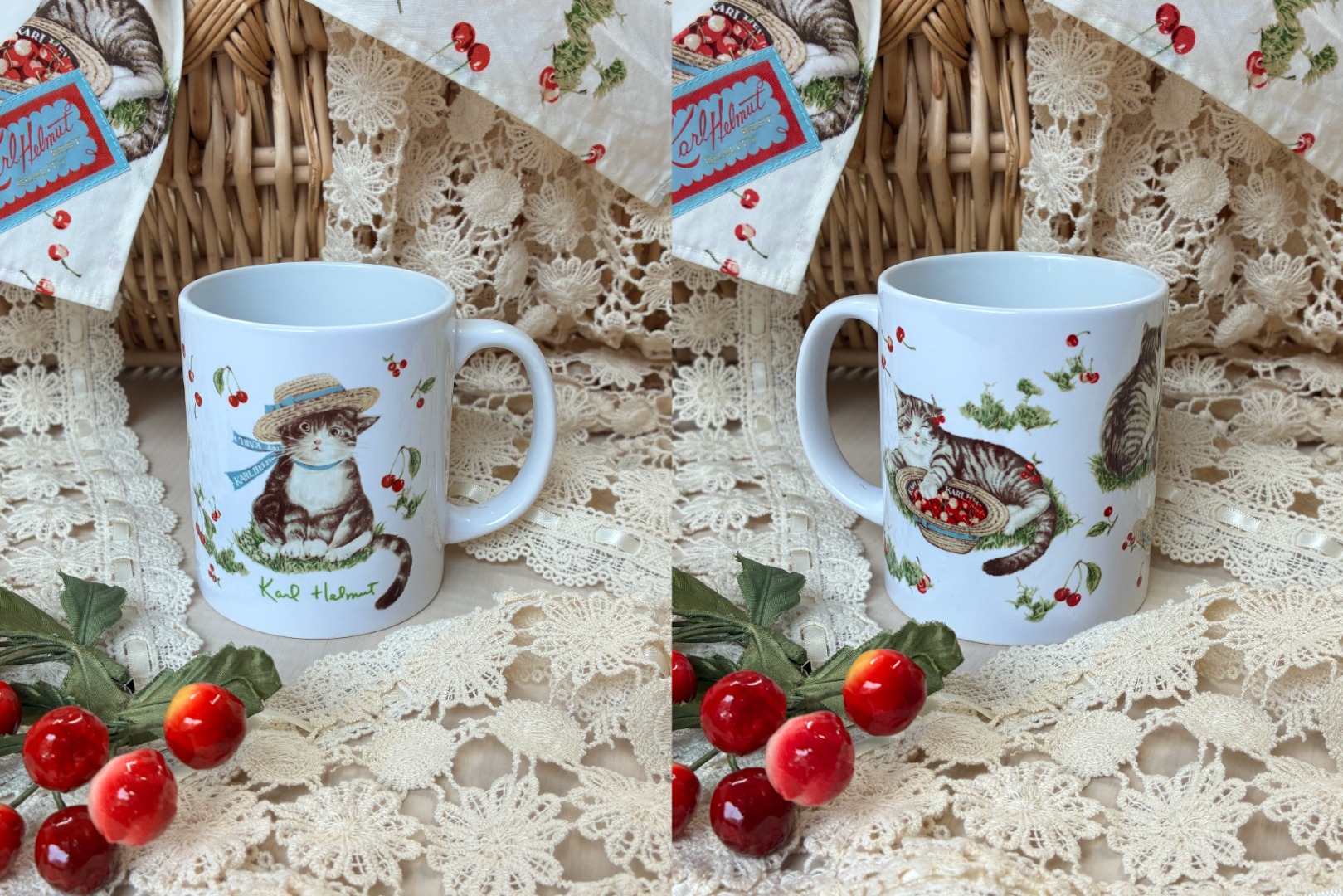 さくらんぼの丘のねこプリントマグカップをプレゼントいたします。