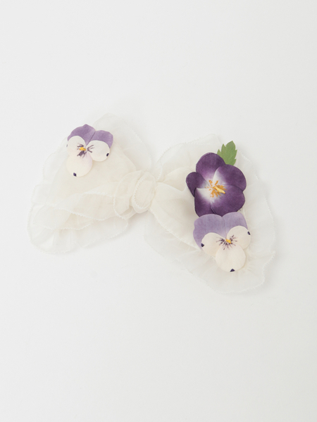 パンジーコサージュ付きオーガンジーリボンブローチ¥9,350(税込)