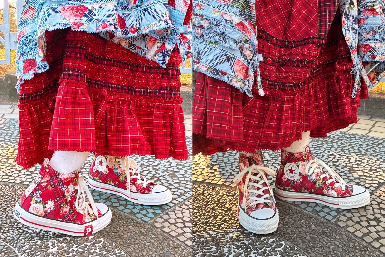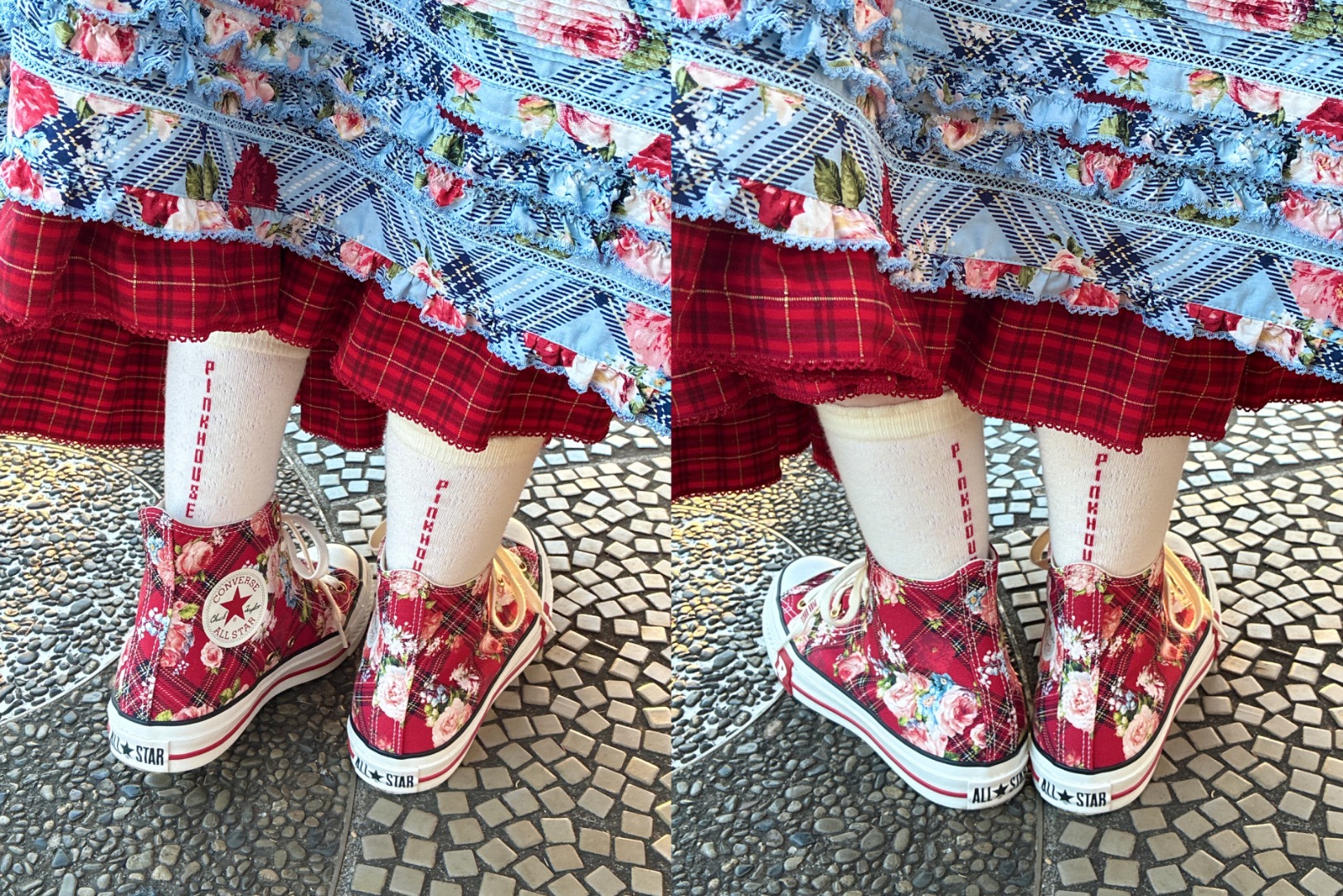 CONVERSE×PINK HOUSE フラワーチェック柄スニーカー