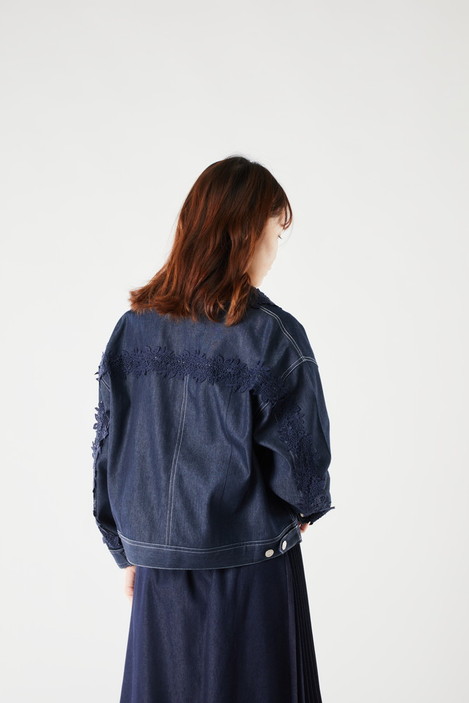 同色のレースを装飾し、エレガントさもプラスしたジャケットです。