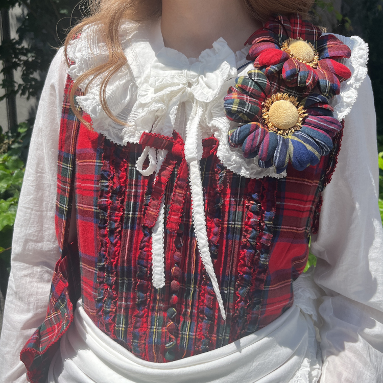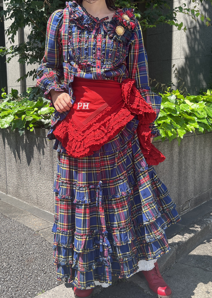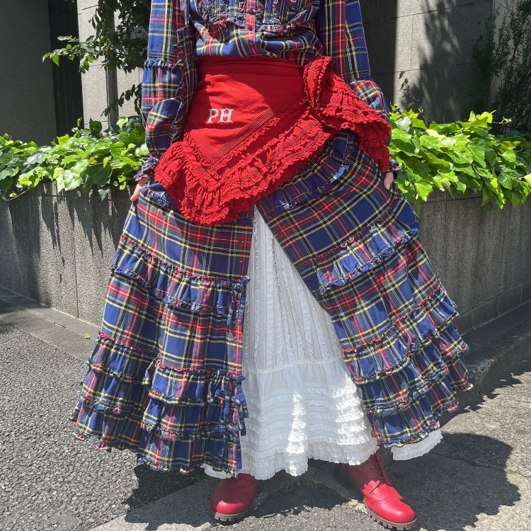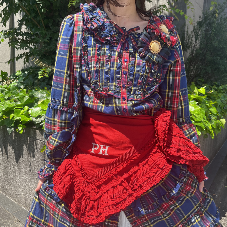 フリル使いのアイテムは無地合わせでもチェックを重ねても素敵に着こなせます。
