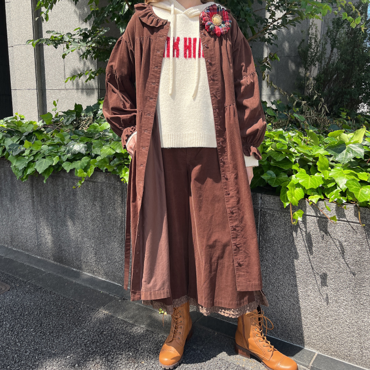 細い縦畝が特徴で、繊細なピコフリルを合わせて、カントリーな可愛いらしさを。