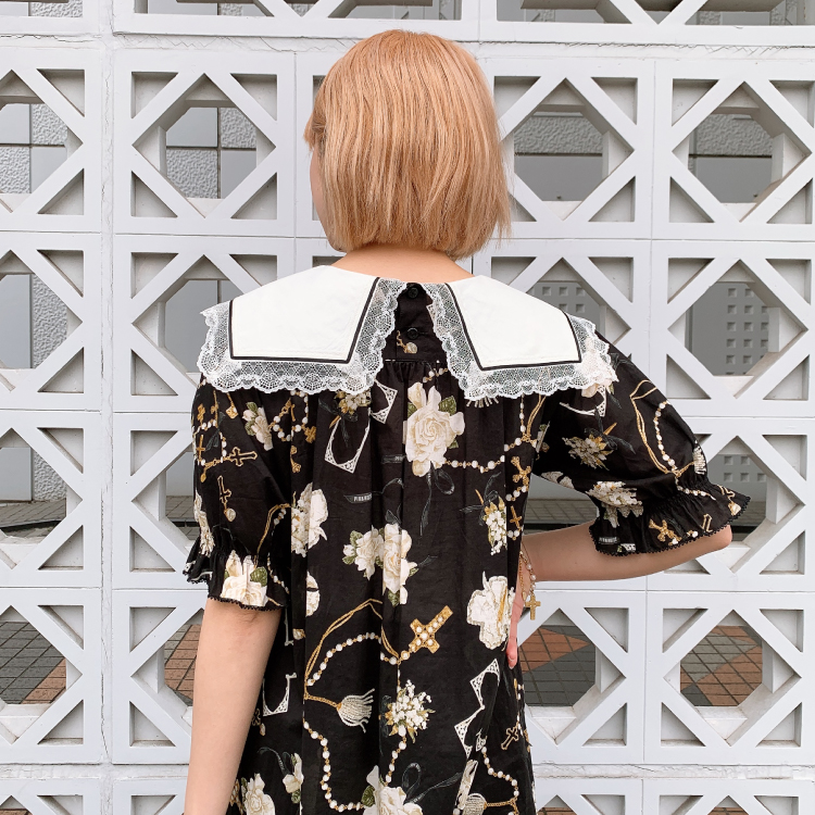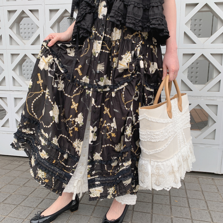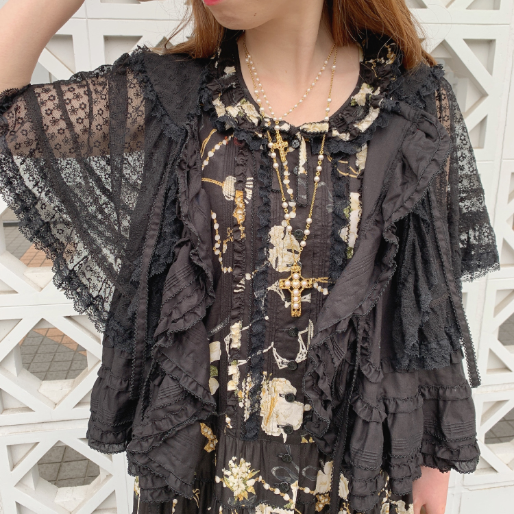 クロスモチーフのオリジナル綿レースをあしらったアイテムにも世界観を散りばめて。