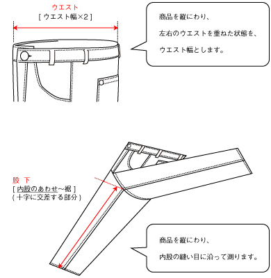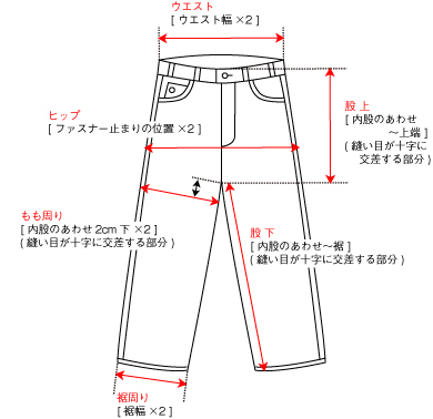 一部外寸を測定している商品がございますので、その際は上記のサイズ測定箇所をご参考ください。