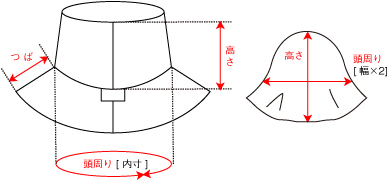 ※チューリップハットの高さはつばを含めた高さを測ります。