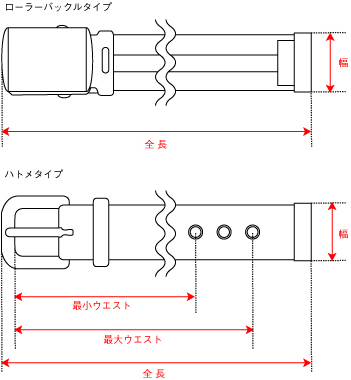 ※ローラーバックルタイプのベルトは「全長」のみを測ります。